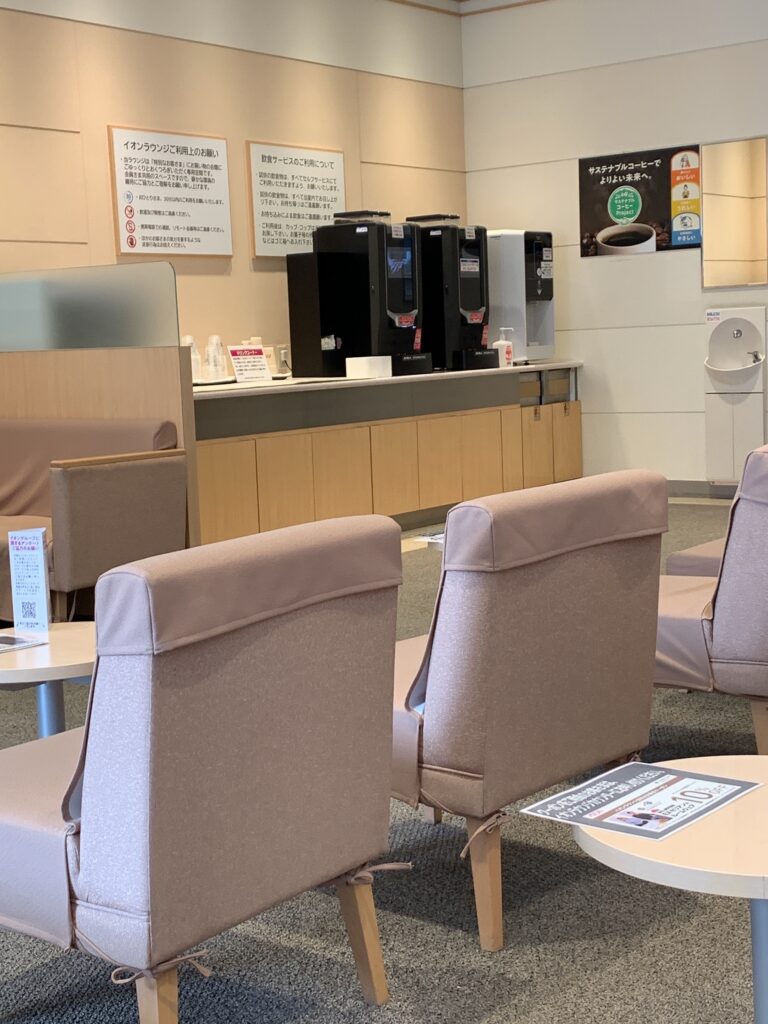 イオンラウンジは、イオンの株主や一部の会員向けに提供されている休憩スペースです。ドリンクや軽いお菓子をいただきながら、買い物の合間にゆっくり過ごすことができます。